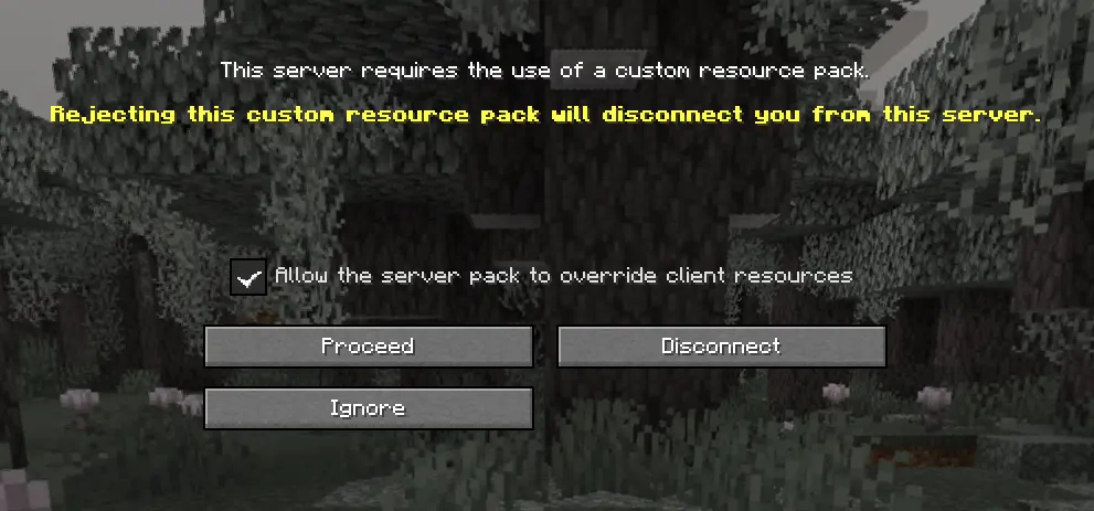 You can control the way Server Resource Packs are, not from the usual "Accept or don't connect", you can either Ignore (Accepts but doesn't apply - Works on servers) Accept it, but with a check if you want the server to override (Change) the existing resources from your enabled Resource Packs on your client!
